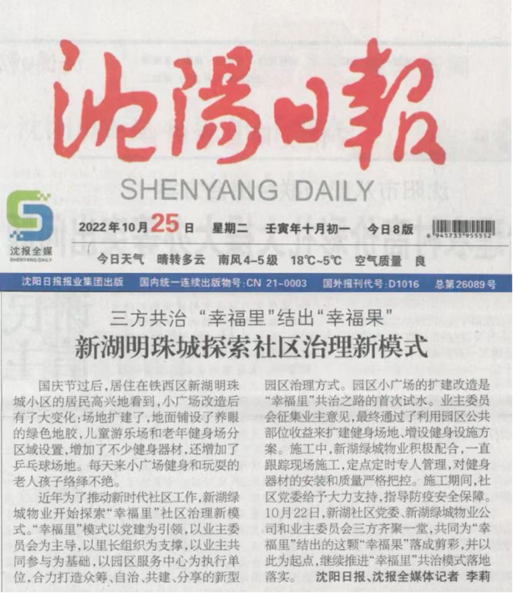 日,沈阳日报以题为《三方共治,“幸福里”结出“幸福果”