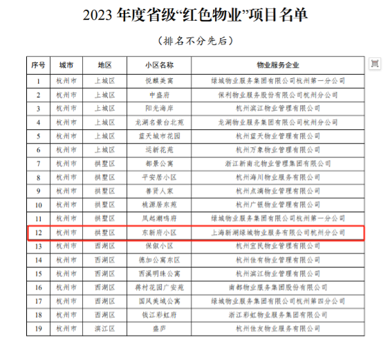 杭州东新府被评为2023年度省级“红色物业”项目
